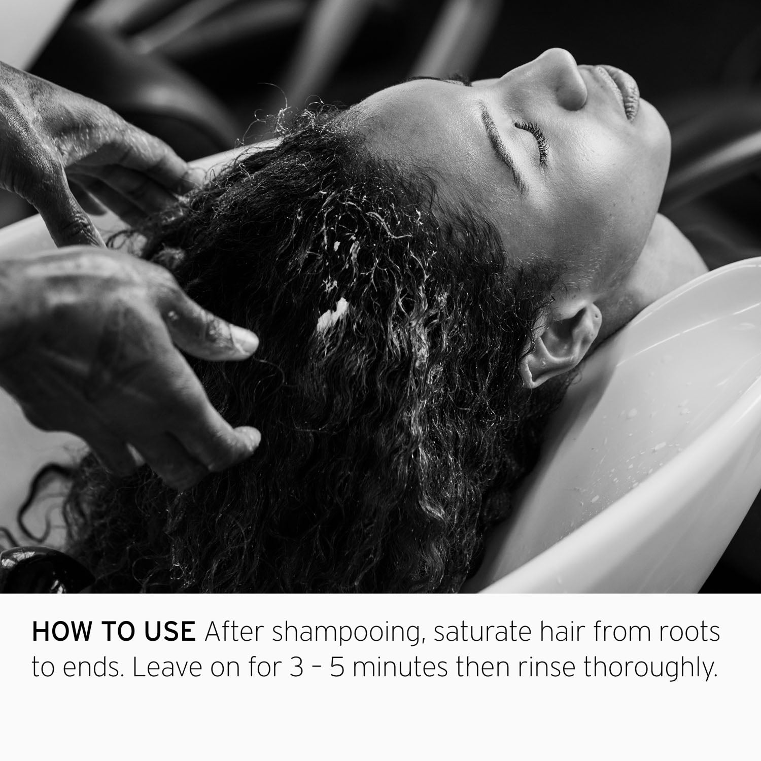 After shampooing saturate hair from roots to ends. Leave on for 3 – 5 minutes then rinse thoroughly.